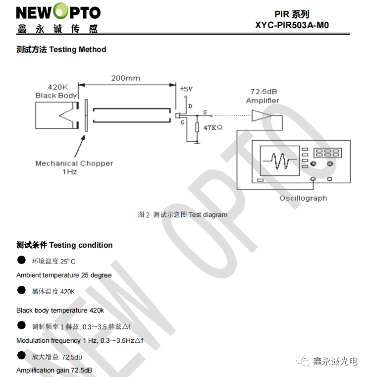 XYC-PIR503A-M0是鑫永誠光電推出的一款新型火焰傳感器, 在室溫范圍內材料的熱釋電系數隨溫度的變化很小,輸出信號的溫度變化率只有 1―2‰,探測器性能的溫度穩定性非常好,并且在1~20um 波長范圍內光譜響應一致性非常好。主要用于紅外輻射溫度測量,光譜測量,液體`雜質含量分析,氣體分析,輻射功率及能量測量,激光功率及能量測量,明火探測,人體移動報警等。